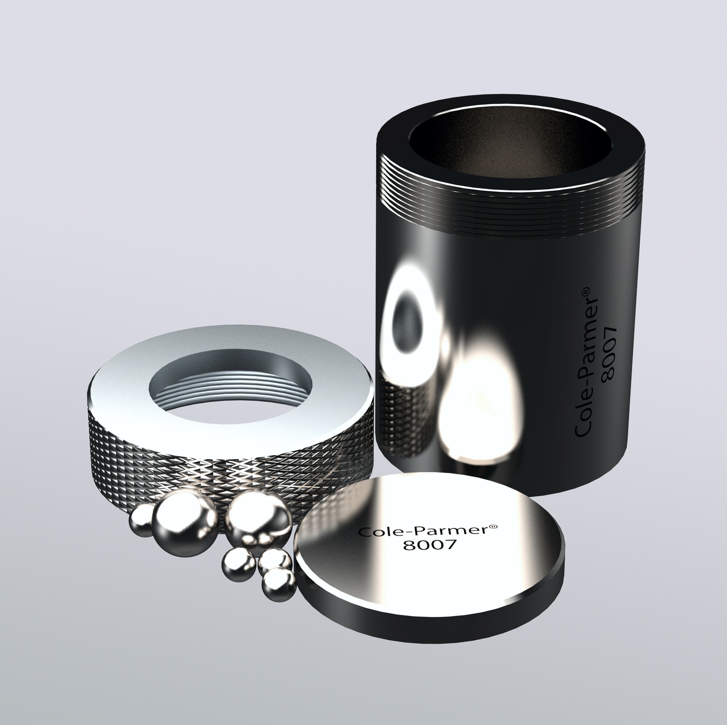 Mahlgarnituren und Mahlkugeln für die Cole-Parmer BM-400 Mixer/Mill® sind in den folgenden Materialien mit unterschiedlichen Mahl- bzw. Mischvolumina bzw. Durchmessern erhältlich: